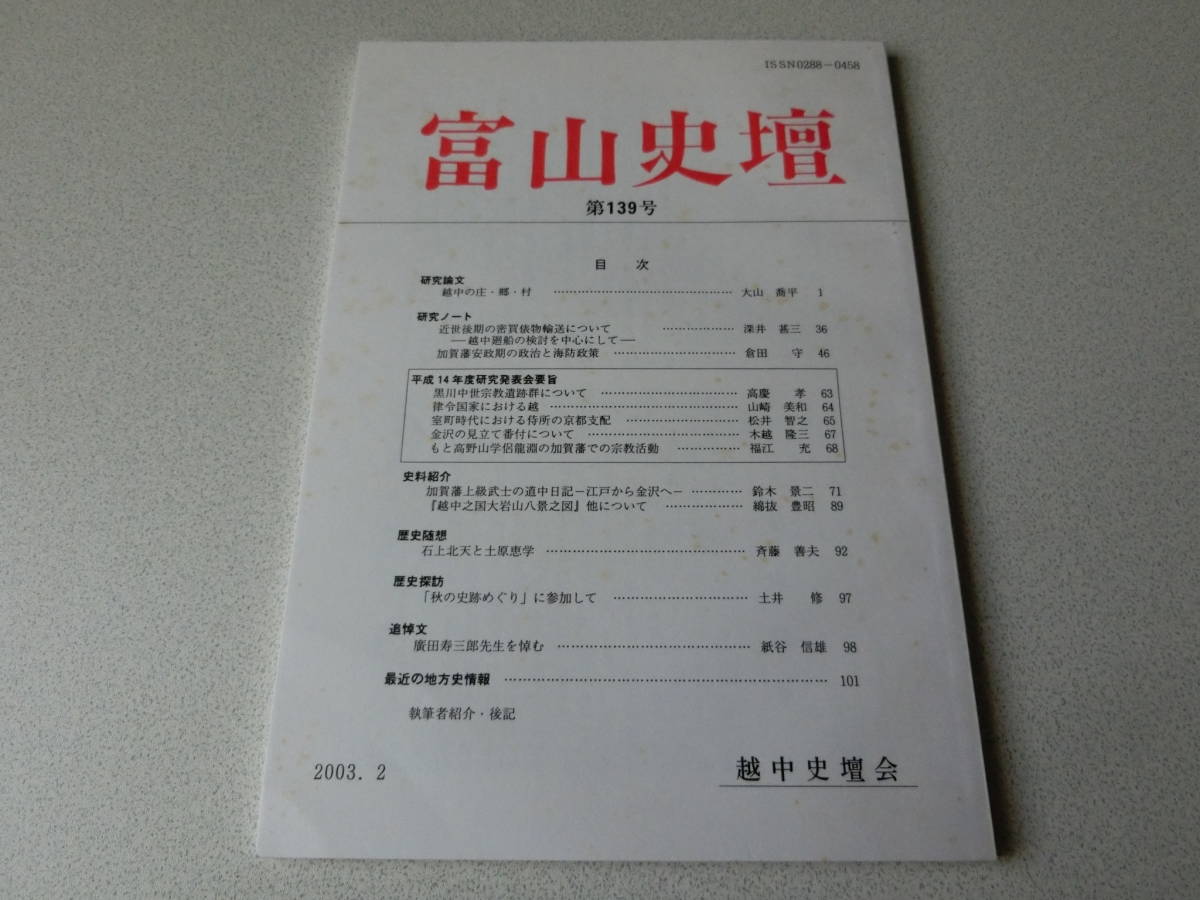 - 富山史壇 139号 越中の庄・郷・村