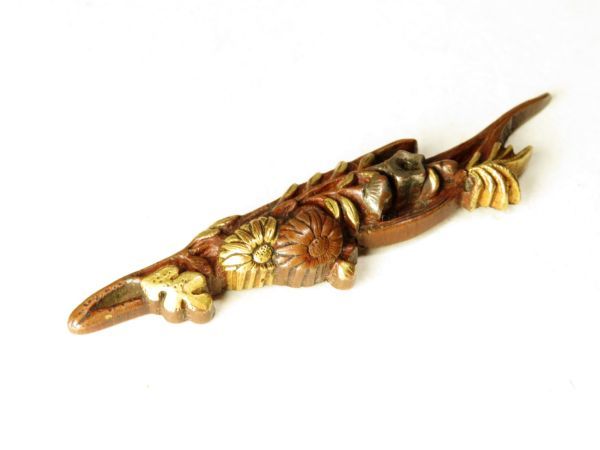 - 【6484】提げ物 (江戸~明治 オリジナル) 素銅 菊花 彫金 金具(初品・買取品)