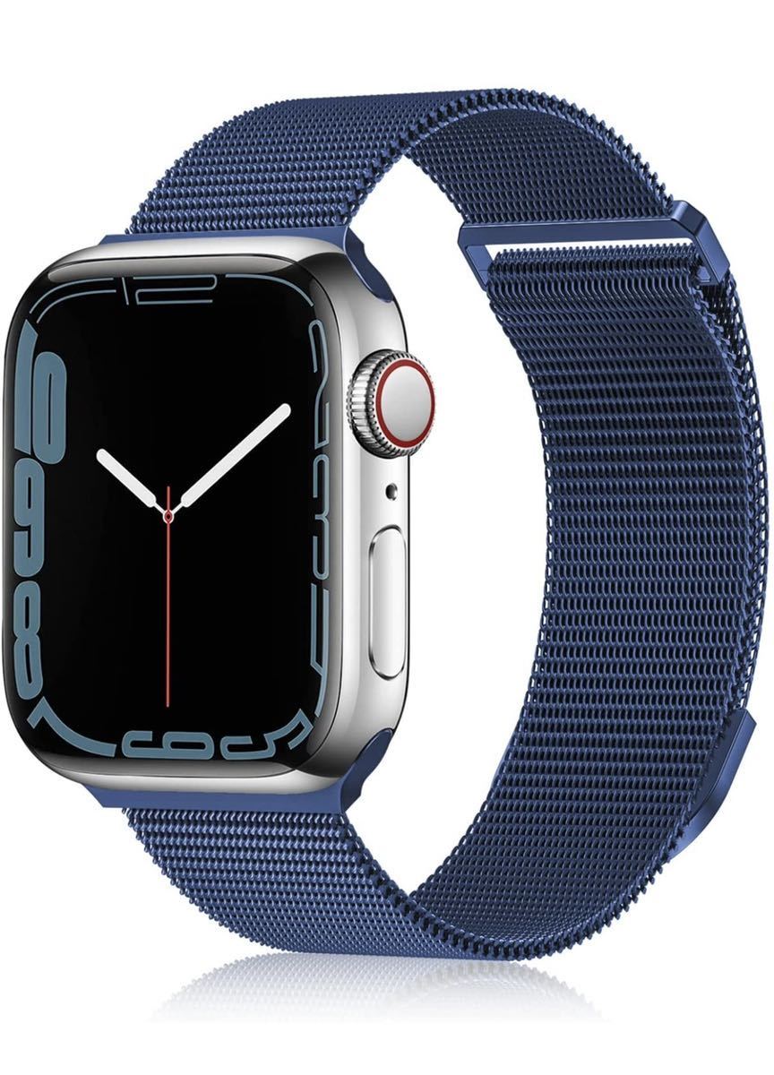 > Apple Watchアップルウォッチ バンド42/44/45/49mm 交換ベルト 金属ステンレス 磁石留め シリーズ2345678SE対応 工具不要 ブルー