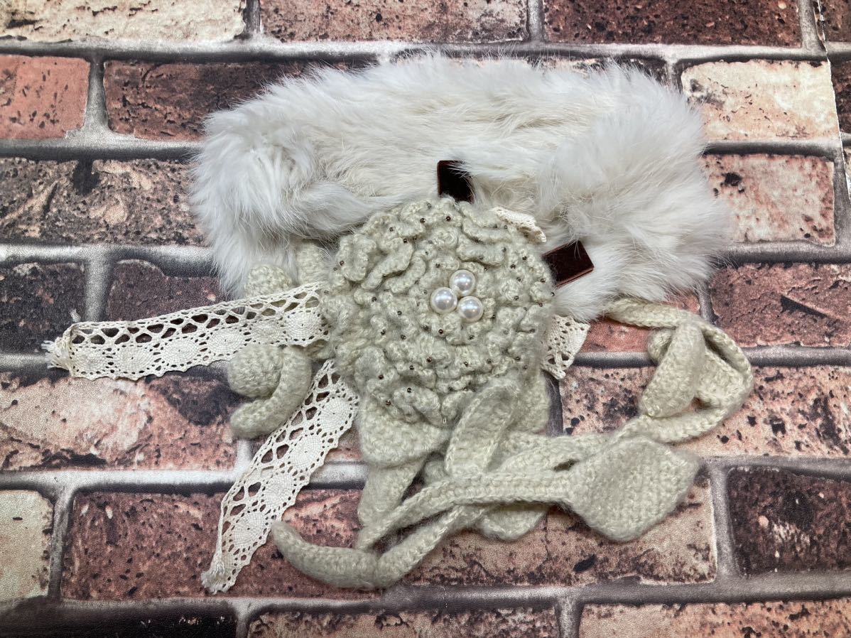 - 送料無料!訳あり限定特価!可愛い!綺麗!首元華やか!ビーズ&レース付き 天然ラビットファー1個