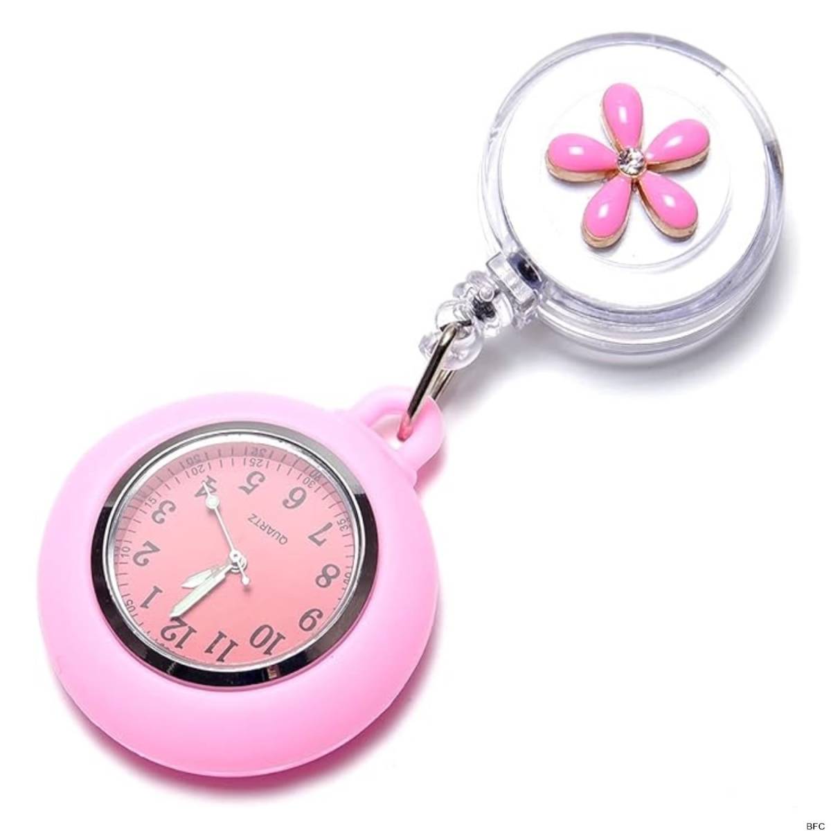 - ナースウォッチ ピンク 蓄光 リール式 シリコン 懐中時計 小型 レディース オシャレ かわいい 送料無料 シンプル