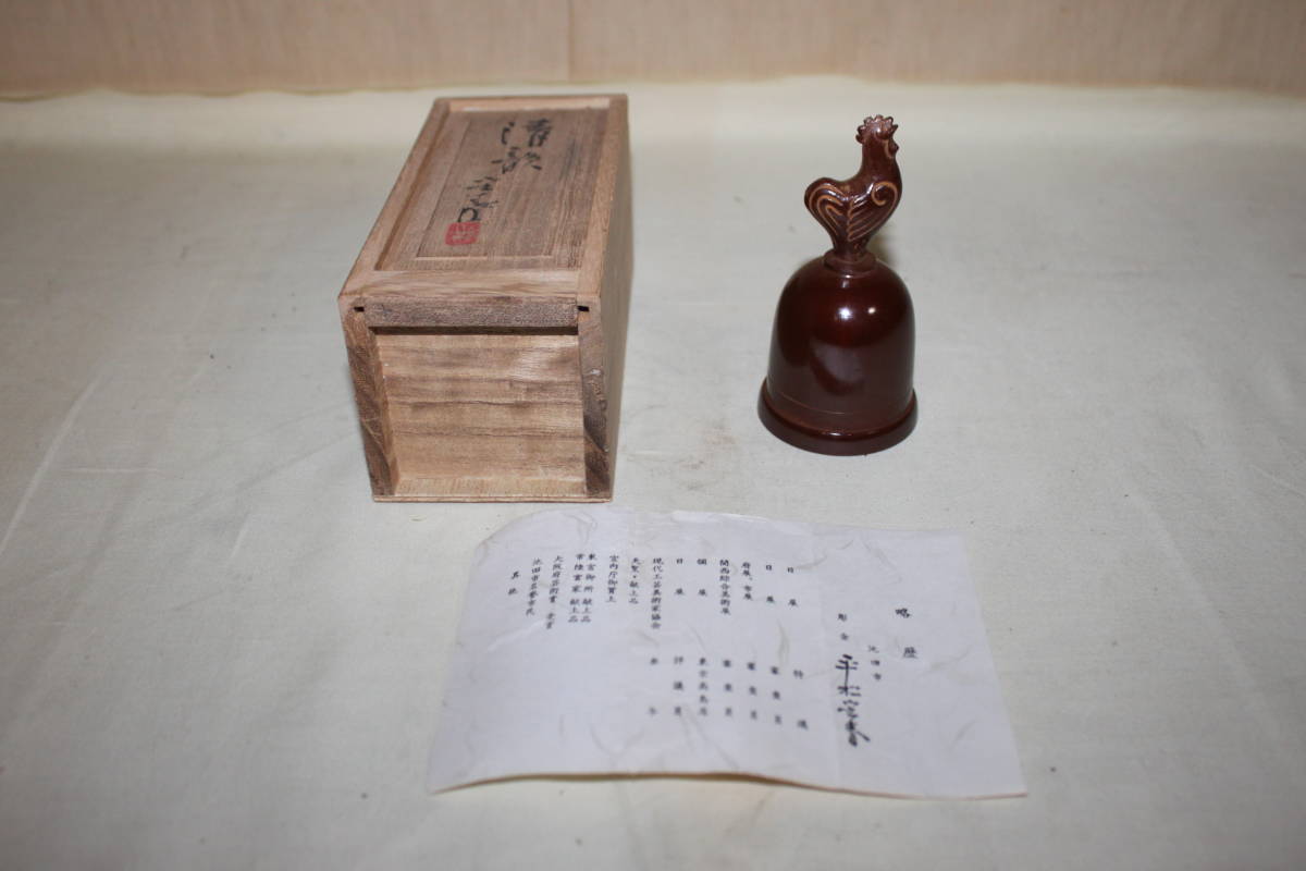 - ◆彫金家 平松宏春作 銅製 鶏形呼鐘「清韻」共箱