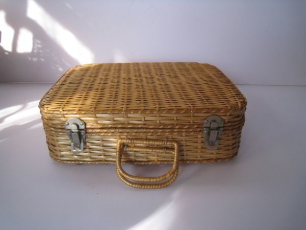 - 竹細工 竹編み持ち手付きパスケット BOX 収納ケース 天然素材 古民具 竹工芸 /21N12.21-62