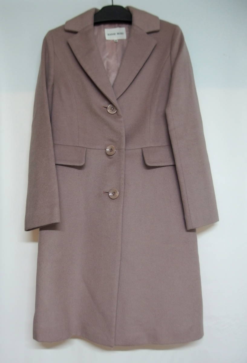 > ♪☆【シミあり】HANAE MORI アンゴラ・シルク混 ウール コート グレイッシュピンク 38(Mサイズ)レディース アウター ハナエモリ