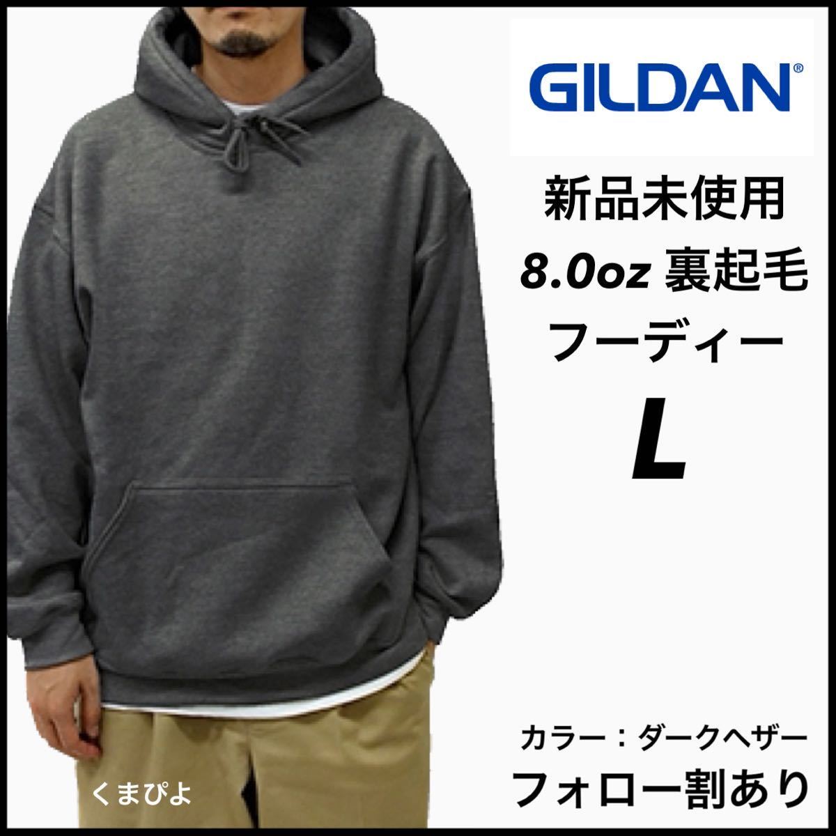 - 新品未使用 ギルダン 8oz プルオーバーフーディー 裏起毛 パーカー GILDAN ダークヘザー L