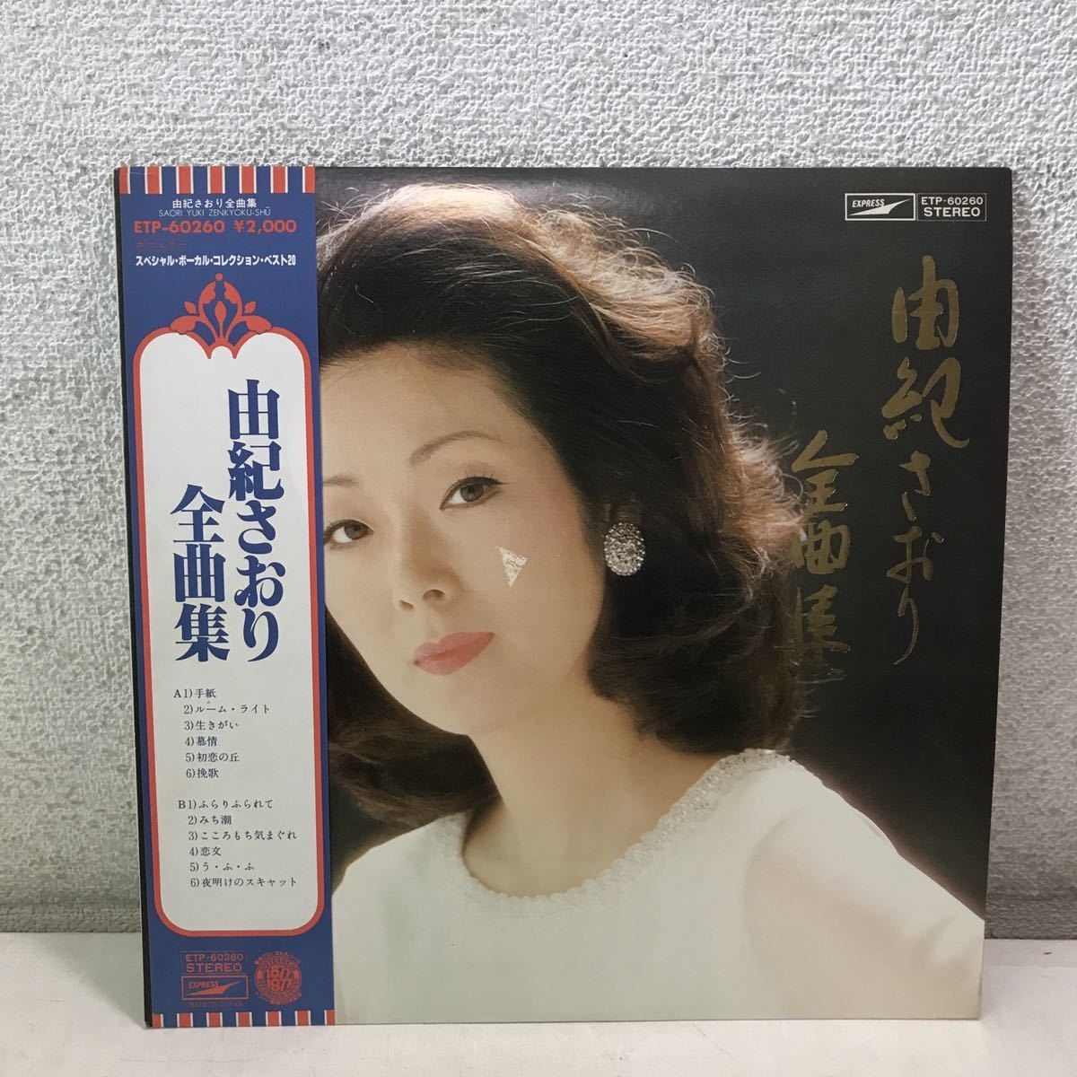 > E01上◎ レコード LP ◎240112 由紀さおり 全曲集 手紙/ルームライト/生きがい/ふらりふられて/恋文/みち潮 帯付き 美盤 ◎240112