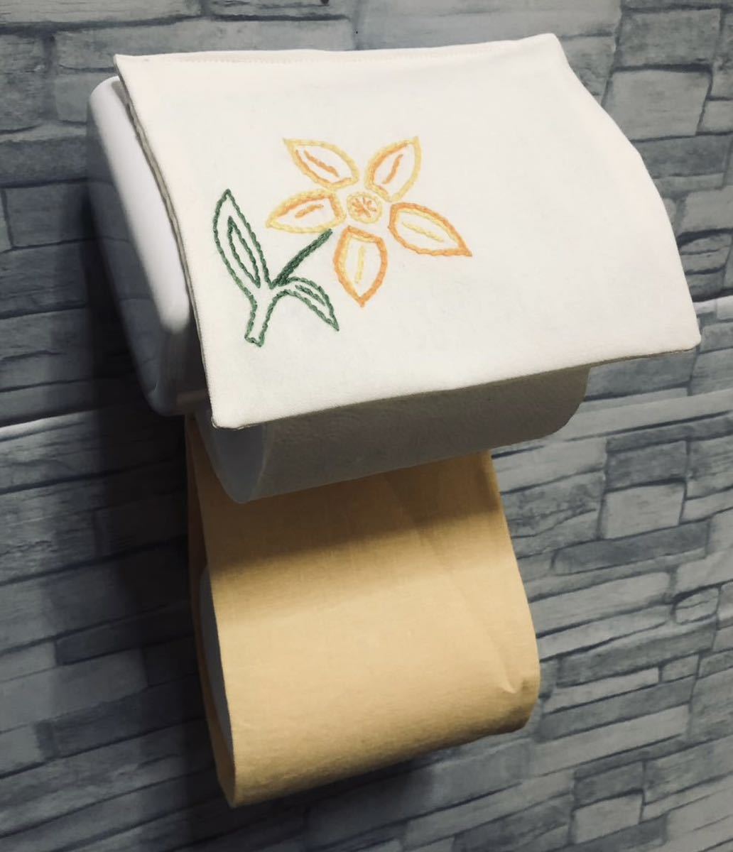 - 手刺繍 花 トイレットペーパーホルダーカバー 刺繍 ハンドメイド ペーパーホルダーカバー 刺繍
