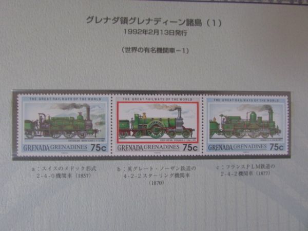 - E 世界の鉄道 グレナダグレナディーン 世界の有名機関車-1 3種完 1992.2.13