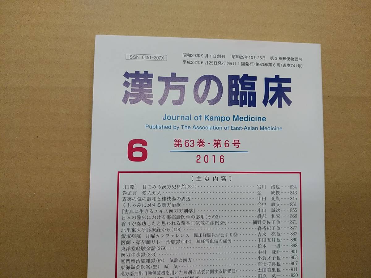 - 漢方の臨床 2016(平28)年6月 第63巻6号 通巻742号 188gクリックポスト185円可