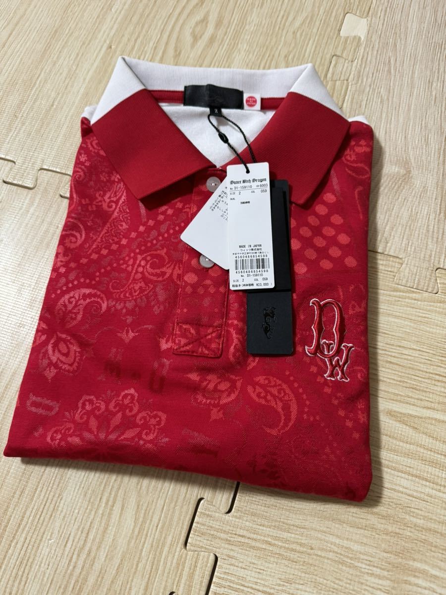- 定価25300円 新品未使用 ダンスウィズドラゴン TWOCOLORジャガードポロ サイズ2 M相当 レッドホワイト 赤 DANCE WITH DRAGON