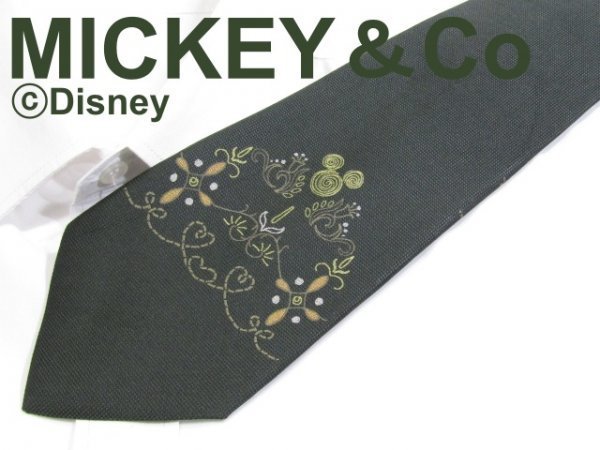 - 【ディズニー ミッキー】C 648 ミッキィー ロイド ネクタイ MICKEY&Co Lloyd's Disney 緑系 刺繍柄ジャガード