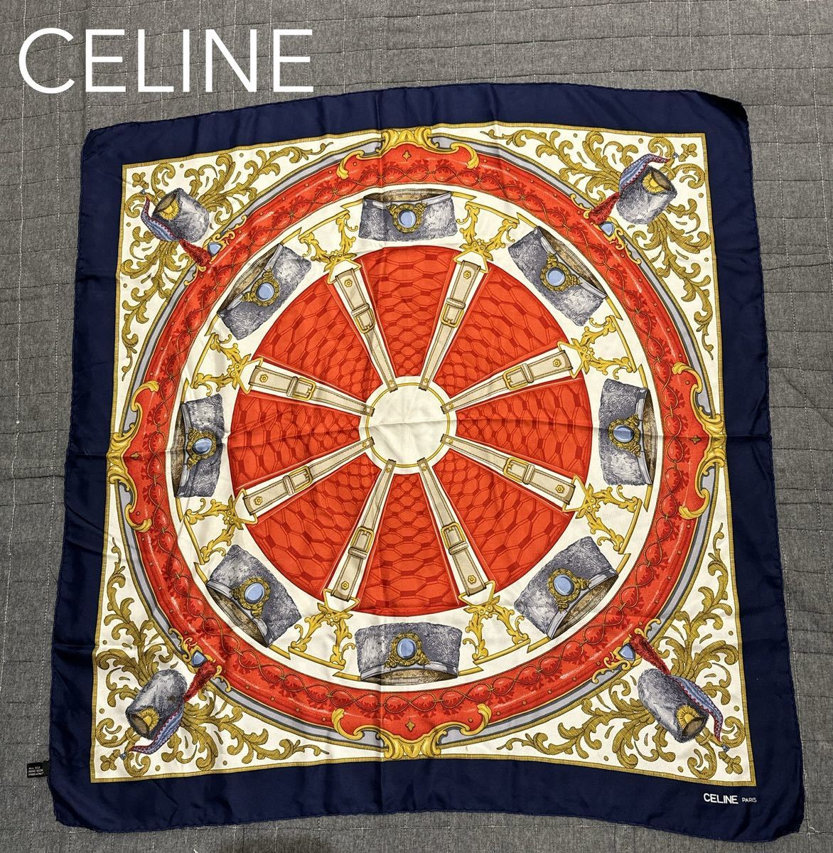 - CELINE セリーヌ 大判 シルクスカーフ ヴィンテージ 帽子 ロゴ