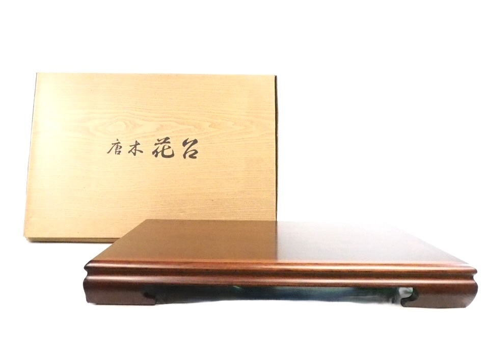 > 美しい木目!昭和ビンテージ 天然木 紫檀 唐木花台 紫丹 箱付き つるぎ工業製 飾り台 飾卓 花器台 鉢置台 1980年代 SKT601