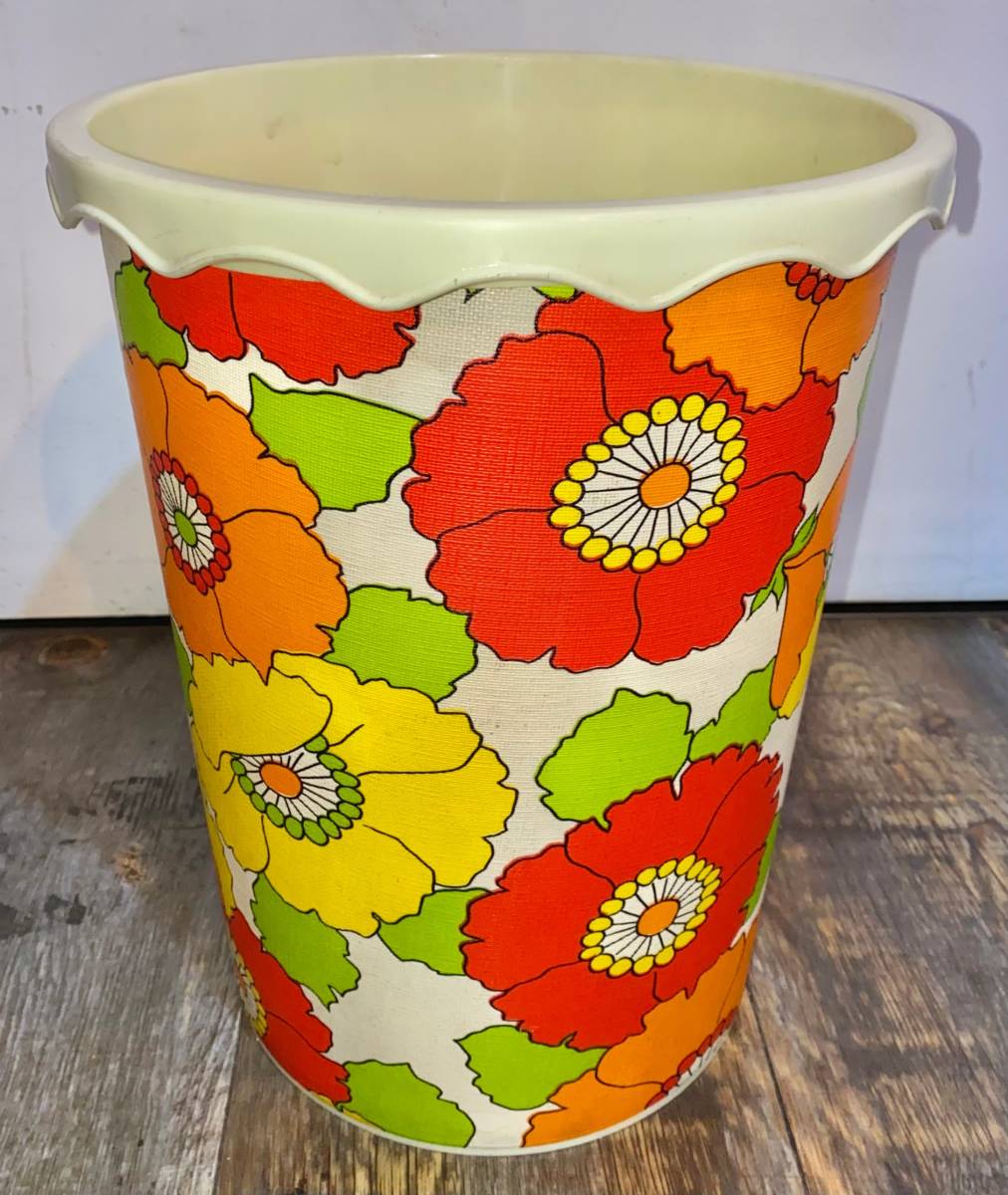 - 【No.406】昭和レトロ 花柄 インテリア屑入れ プラスチック製 ゴミ箱 SANKO PLASTIC ヴィンテージ インテリア 雑貨 中古品