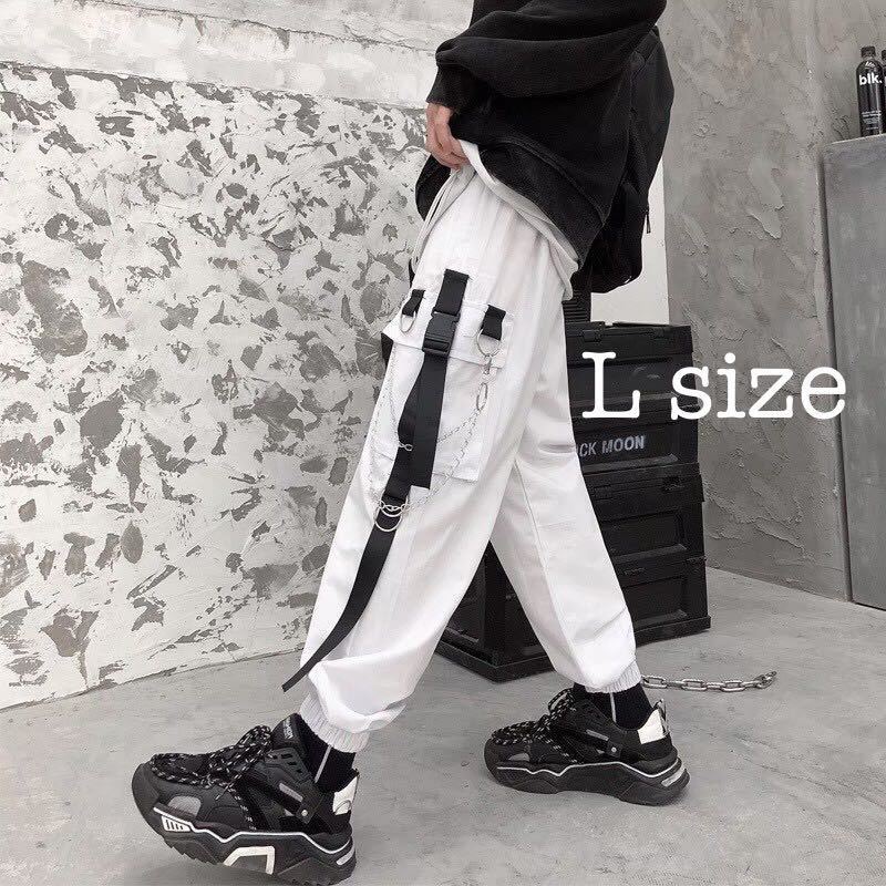 - ジョガーパンツ テーパードパンツ チェーン カーゴパンツ ユニセックス 男女兼用 白 ホワイト L
