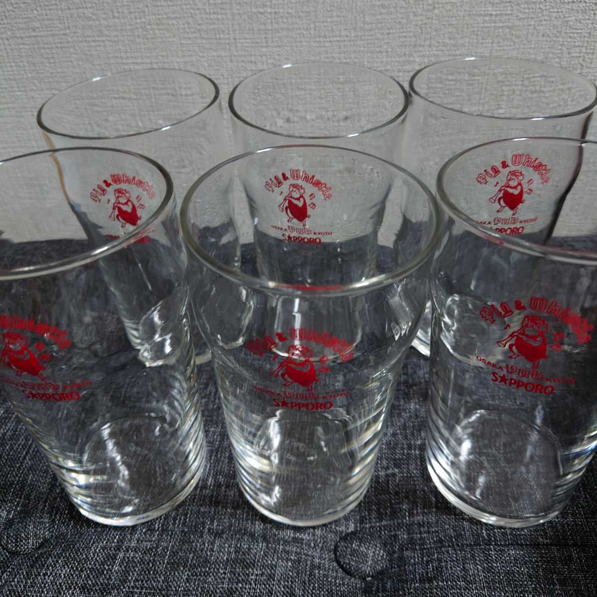 - pig&whistleグラス6個セット☆ピッグアンドホイッスル☆サッポロレア☆未使用コップ