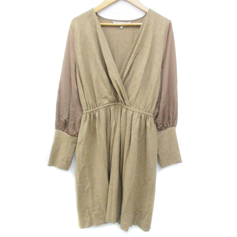 - ビアッジョブルー Viaggio Blu フレアワンピース ひざ丈 長袖 カシュクール ウール 切替 無地 1 ベージュ /FF20 レディース
