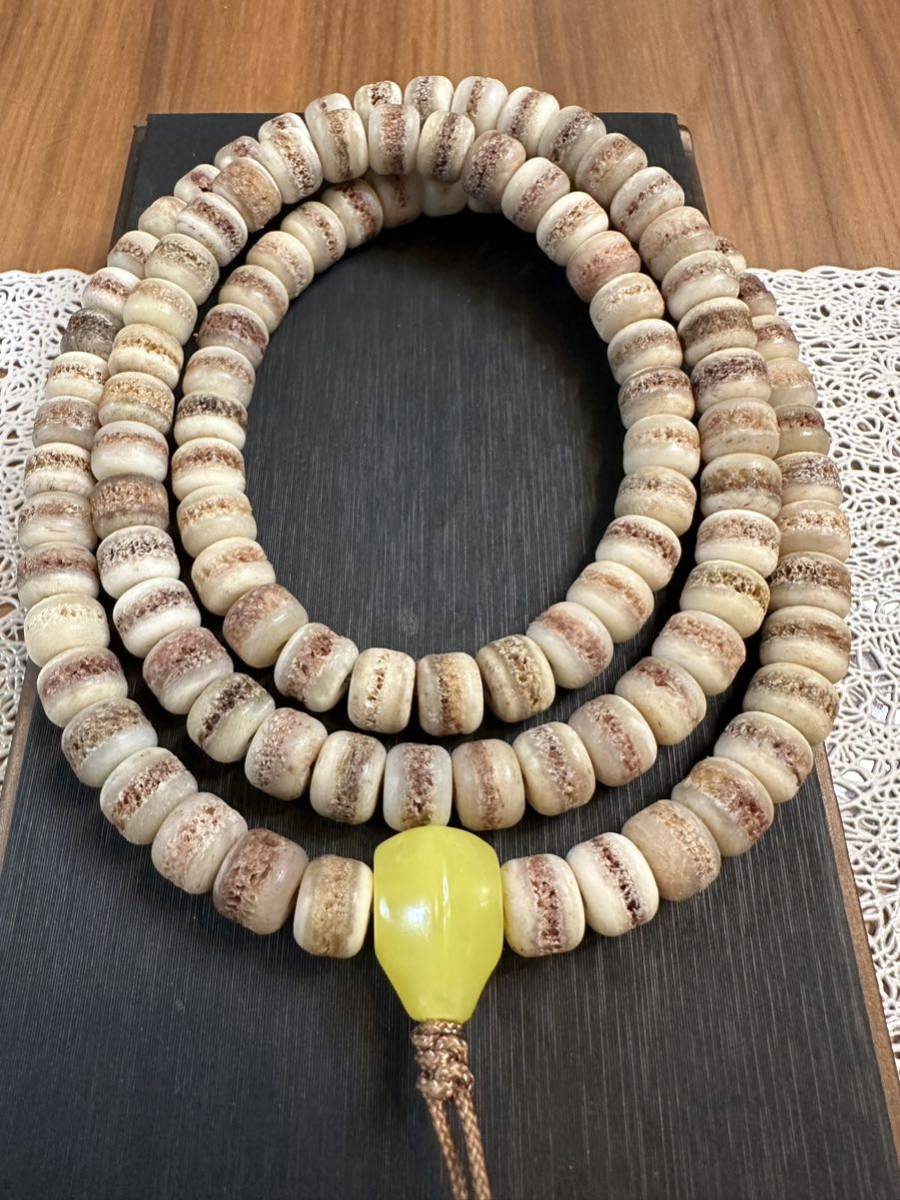 - V-642 文玩 チベット 牛ヤク カパラ 霊骨 稀少 ネックレス 数珠魔除け