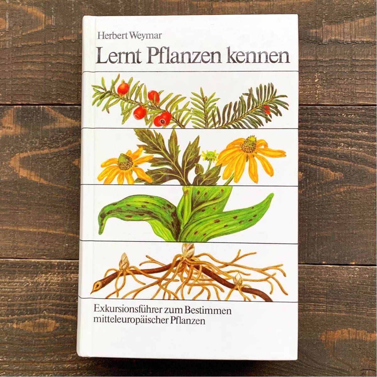 > 東ドイツの古い植物図鑑(Lernt Pflanzen kennen 1988年)/アンティーク ヴィンテージ ヨーロッパ 植物画 花 洋書 ボタニカルアート 美品/