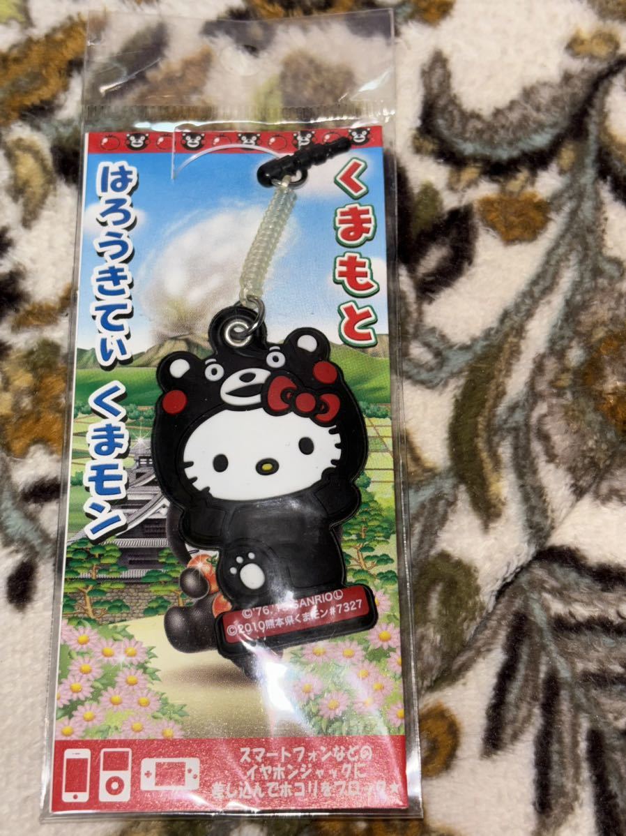 - るろうに剣心熊本限定、はろうきてぃくまモンイヤホンジャック付きラバーストラップ
