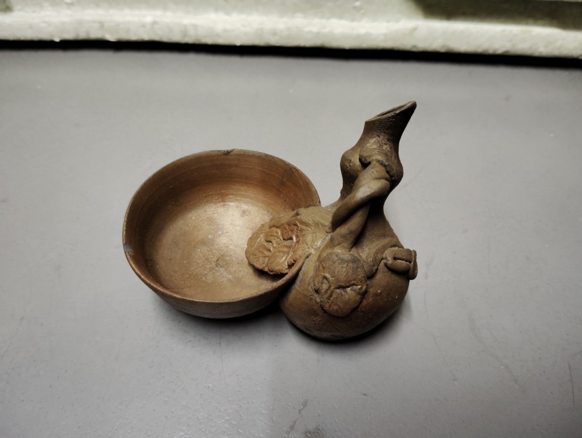 > 古い 古備前 お酒道具? 煎茶道具 朱泥 朱泥 水滴 にわとり 煎茶道具 煎茶道具 鳥 置物 茶道具 塗金銅 急須