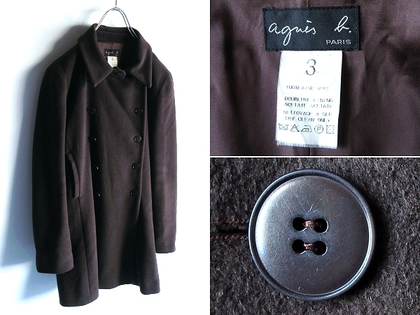 > 希少 00sビンテージ agnes b. アニエスベー ウールビーバー ダブルコート Pコート 3 ブラウン 茶 日本製