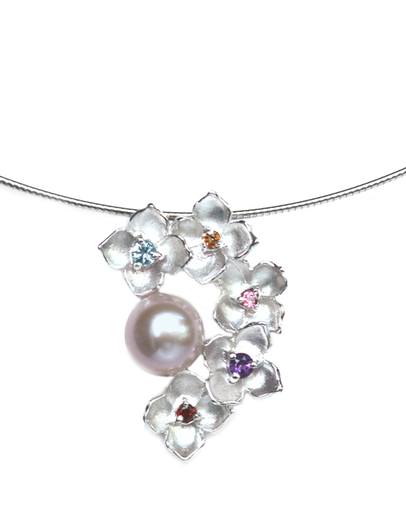 - SV925パール フラワーペンダント・オメガネックレス付き(パープル)