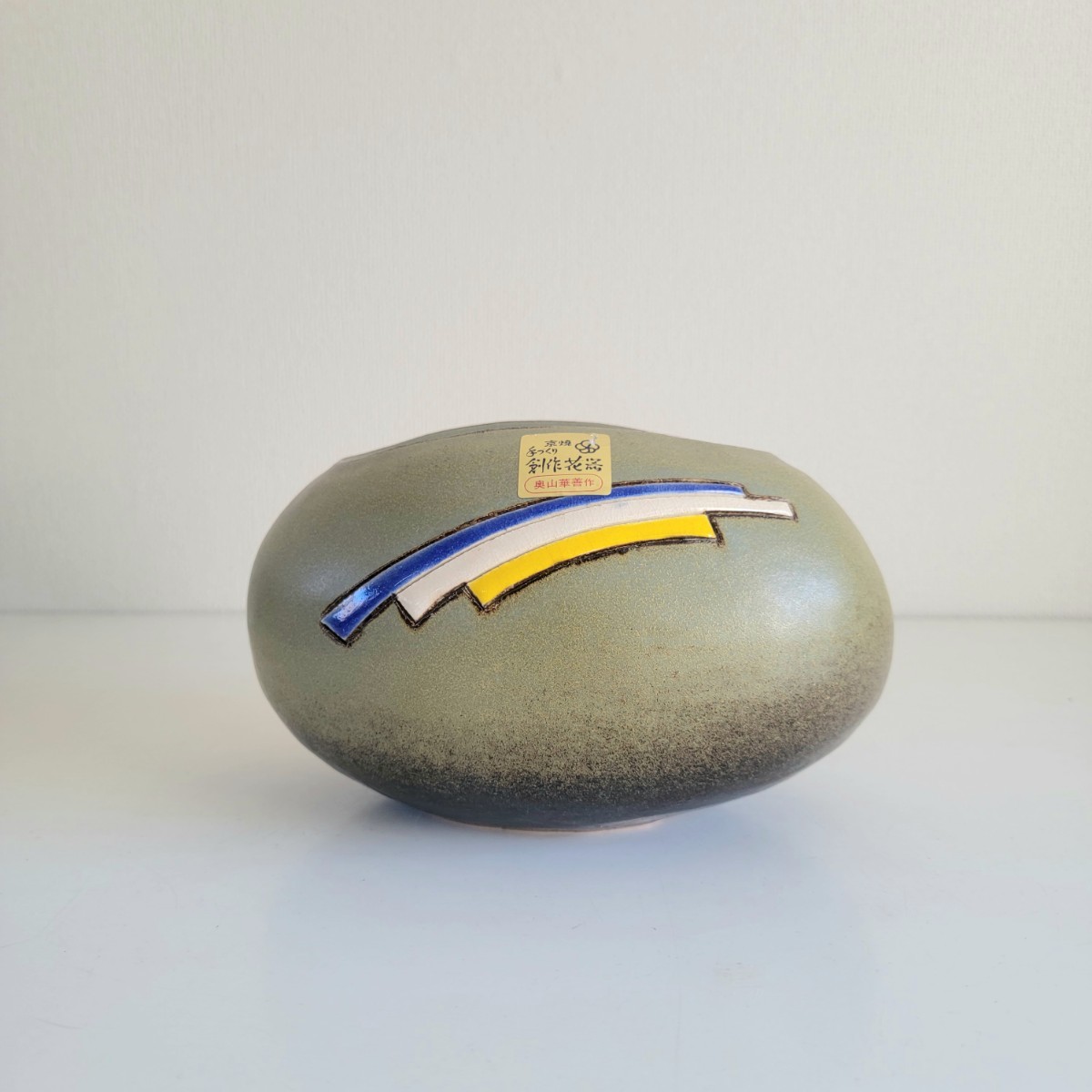 - 京焼 奥山華善 作 いけばな 池坊 作家陶器 華道師範所蔵品 花器 水盤 Japanese Vintage Style Flower Vase 和モダン デザイン 花瓶