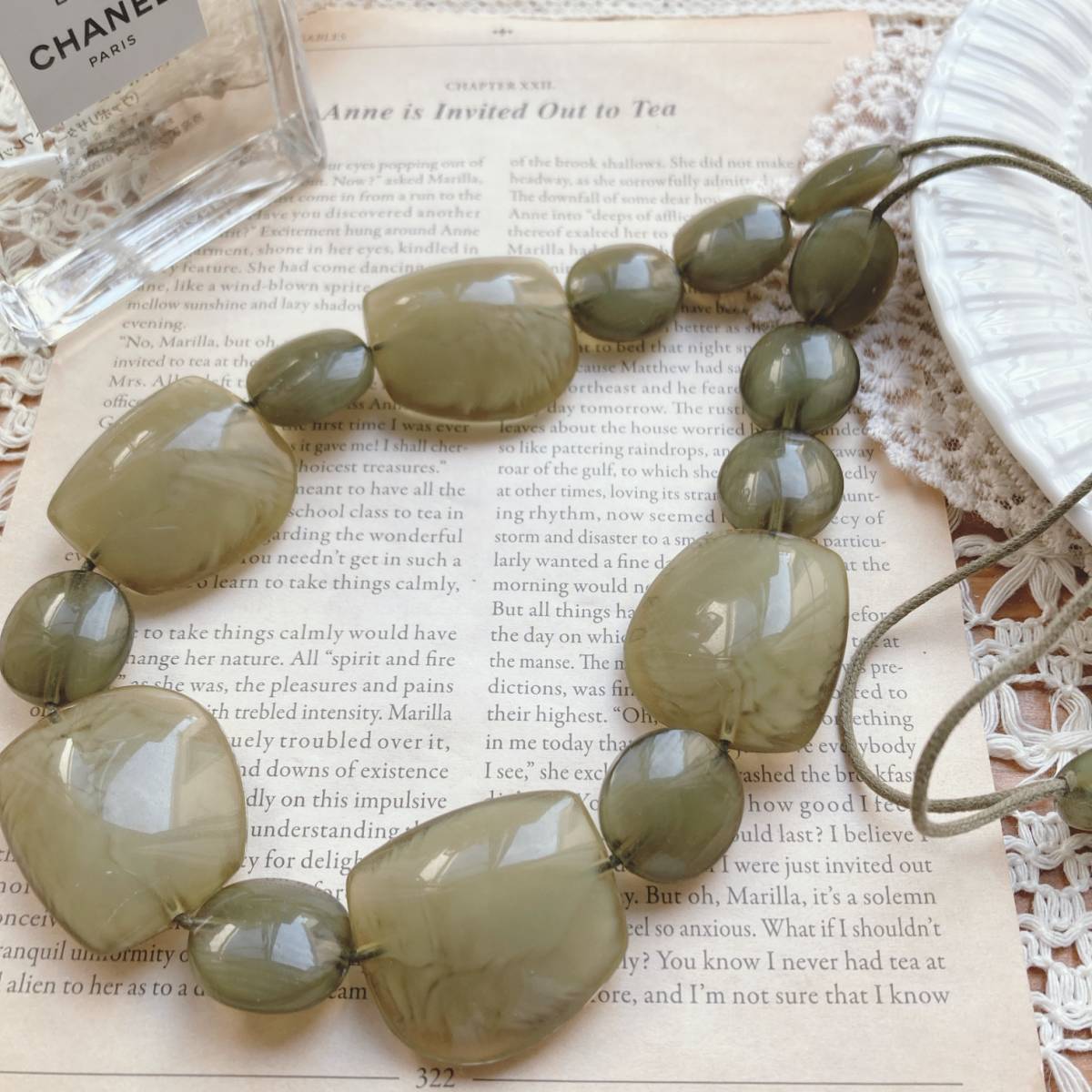 > ヴィンテージネックレス アースカラー グリーン系 紐 スライダー ロング メンズ レディース☆Vintage jewelry accessoriesk0147