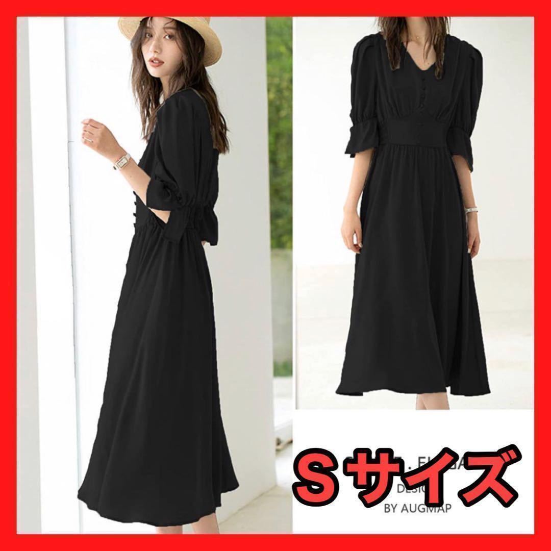 - シフォンワンピース レディース 半袖 ロングワンピース ハイウエスト Aライン
