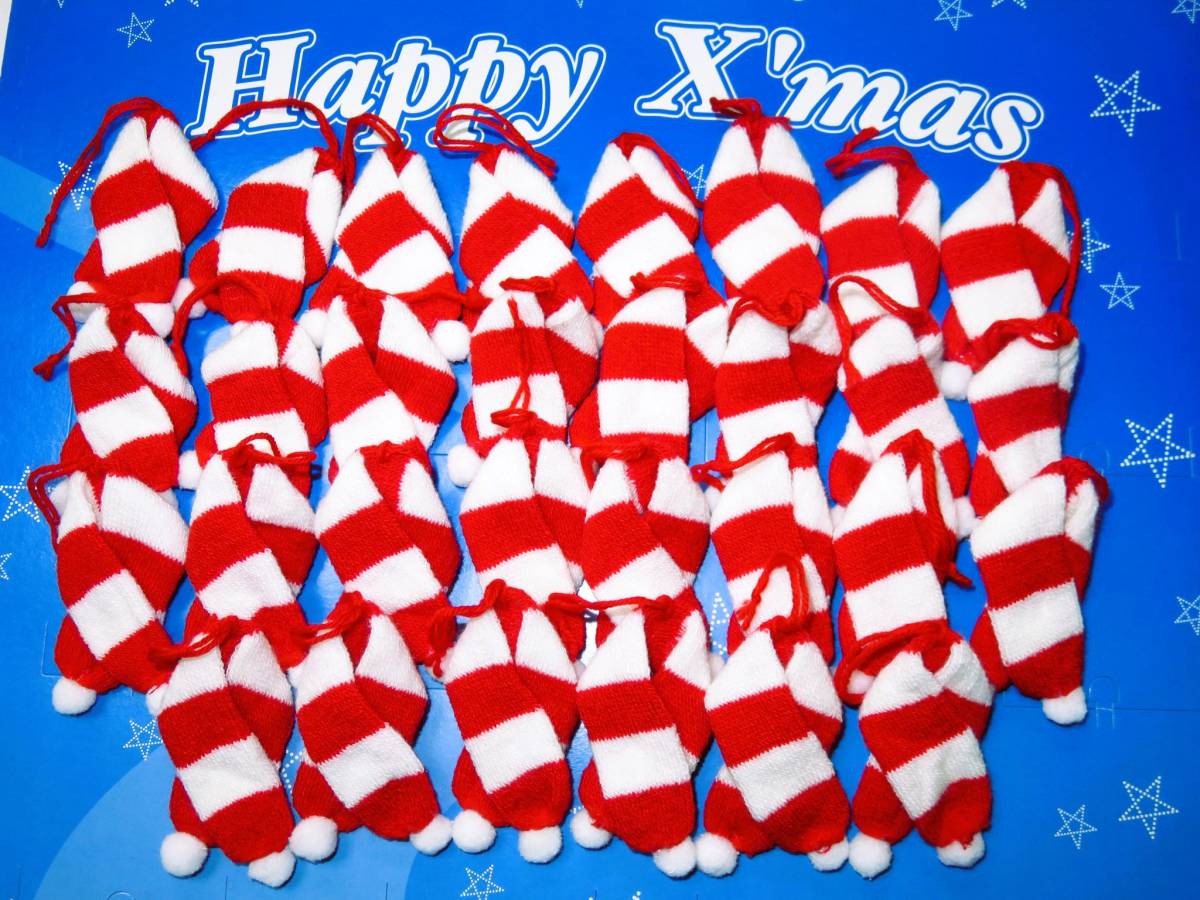 - 【☆ニットマフラーリボンオーナメント赤/白30個☆】レッド/ホワイト *日本製* ツリー飾り チャーム ギフトラッピング リース 販売促進に^^