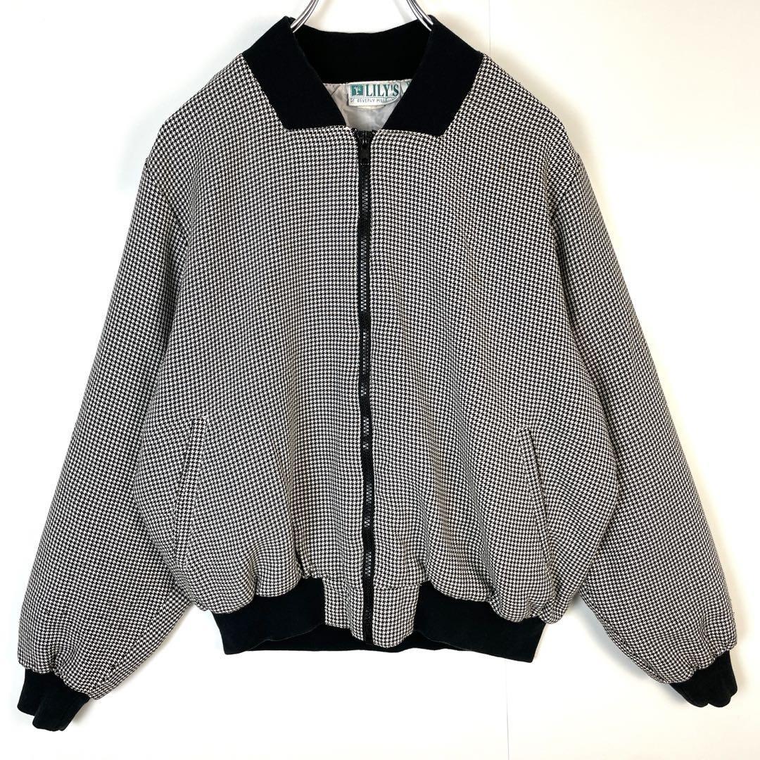 - USA製LILY'Sジップジャケットブルゾン千鳥チェックヴィンテージ白黒レーヨン
