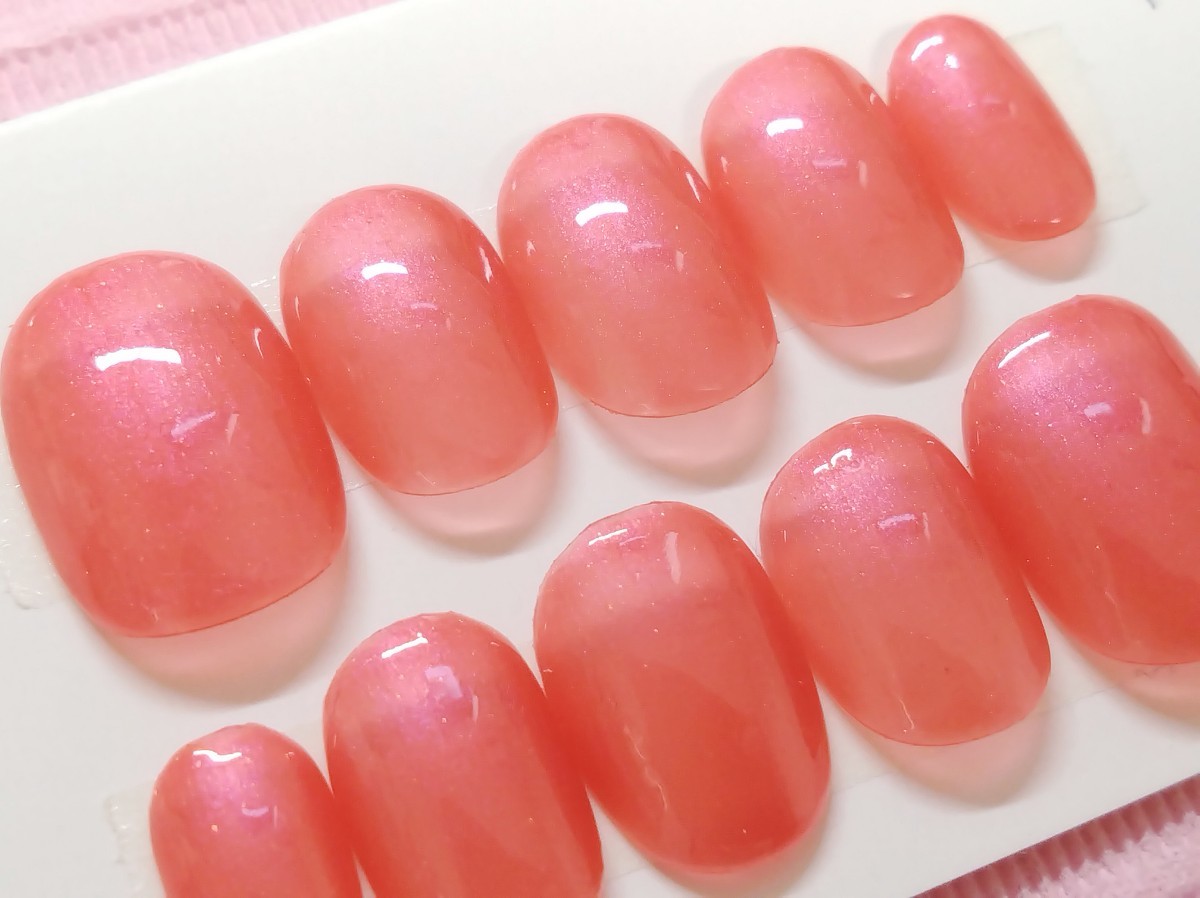- 【ジェルネイル】Mサイズベリーショート・ストロベリーレッドワンカラーシンプルネイルチップカラーリング