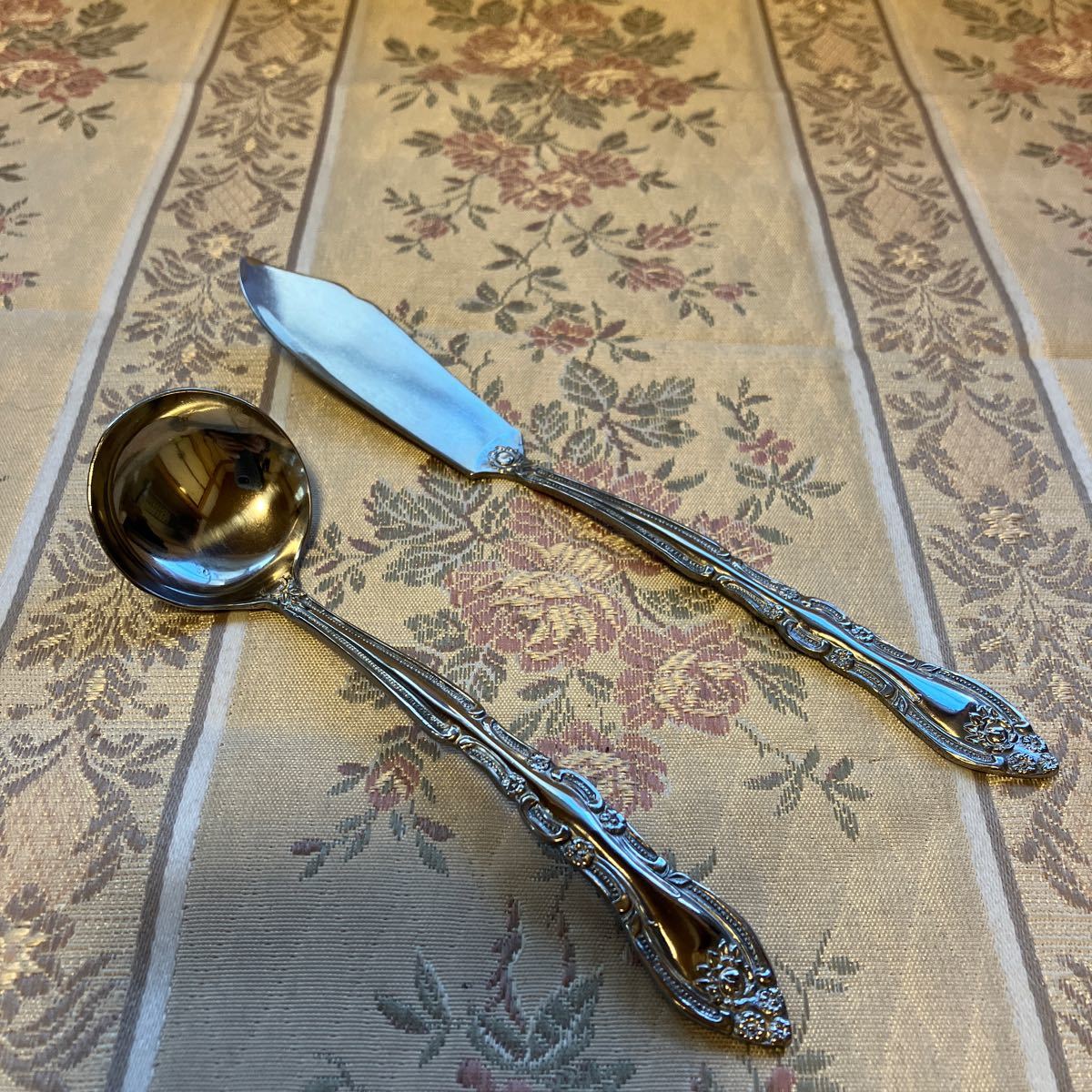 - 未使用★レトロ バラ柄 シュガースプーン&バターナイフ