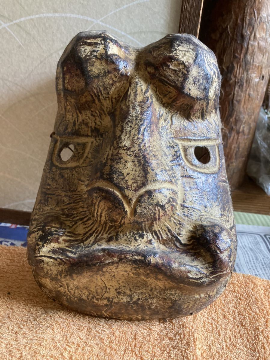 - アンティーク?骨董品?紙製?お面?壁掛け?狛犬のお面?縁起物?です。