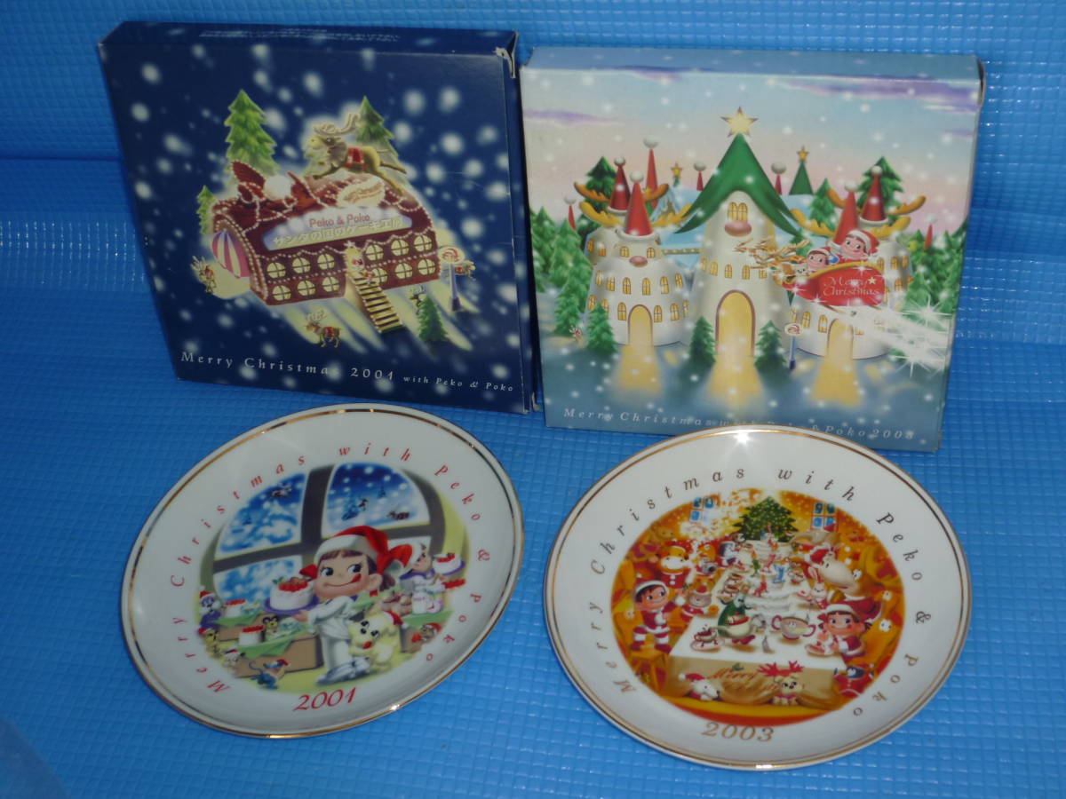 - E★未使用・非売品★不二家 ペコちゃん クリスマスプレートx2枚(2001年と2003年)