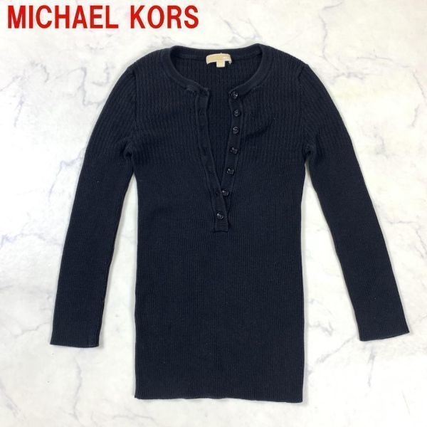 - A53 マイケルコース 長袖カットソー ヘンリーネック 綿 リブ 黒 MICHAEL KORS コットン ブラック P0
