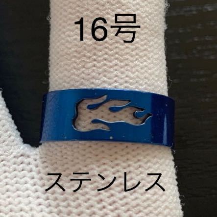 - 【r11】ステンレスファイヤー ブルー リング 指輪 16号