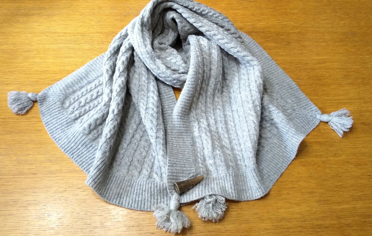 - MACPHEE ニットのビッグストール★グレージュ★ 男女兼用★ウール