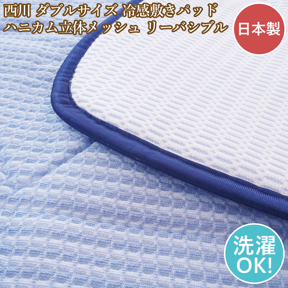 - 西川 冷感敷パッド ダブル 敷きパッド ダブルサイズ ハニカムメッシュ 日本製 洗える リバーシブル CooL ToucH