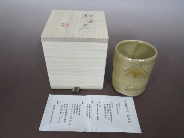 > 真作 伊藤麻沙人 作「知与久」湯呑 共箱・栞付き 陶器 高さ約10cm 美品 送料無料!