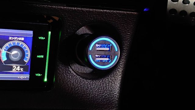 - おしゃれに光るiPhone、iPad スマホ アンドロイド android USBダブルソケットチャージャー 充電器 車内 12v 青 ブルー コペン装着例