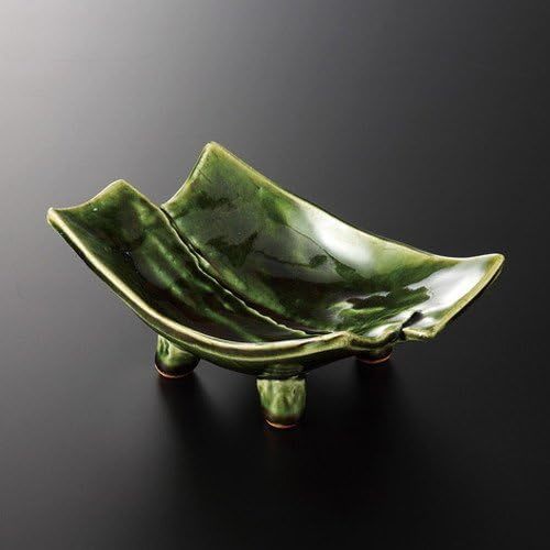 - KM! 美濃焼 ☆織部重ね四ッ足向付☆ 37K096-1 プレート 中皿 ボウル 盛皿 向付