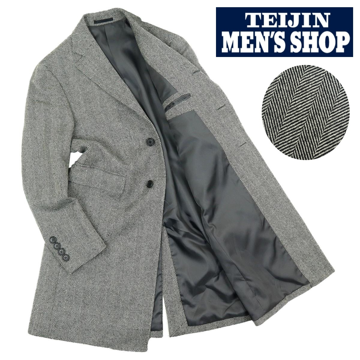 - 【B2882】【新品同様】TEIJIN MEN'S SHOP テイジンメンズショップ チェスターコート ウールコート ツイード サイズ44