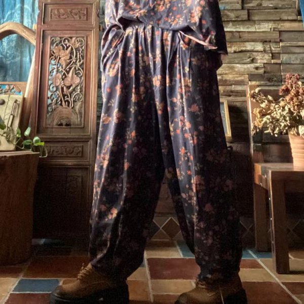 - lgn 1909 ズボン 襤褸 アンティーク風 洋服ミックス ロマンファッション ポップ 楽ちん 花柄2 綿100%