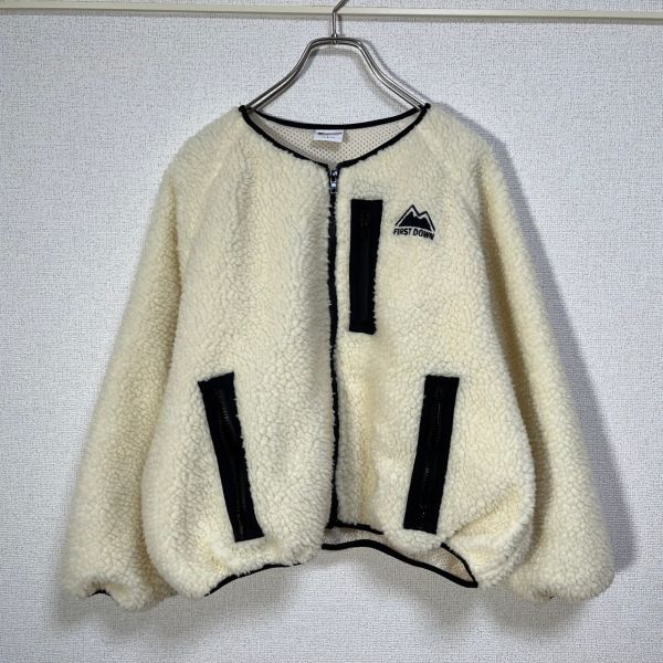 > ファーストダウン ボアフリースジャケット 白 ホワイト 刺繍ワンポイントロゴ8 古着 入手困難 激レア 希少 人気 総柄 レディース