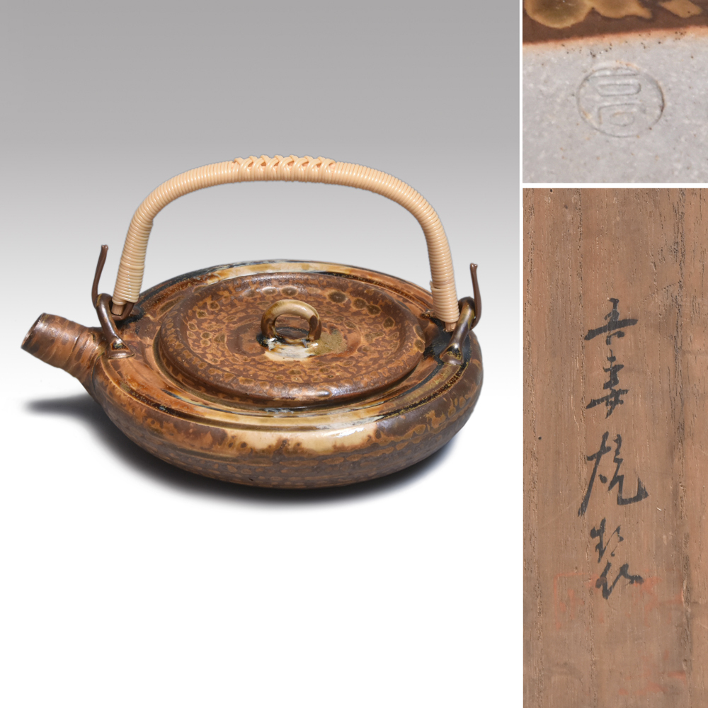 - 遠州好 高取平形 燗鍋 土瓶 茶道具 懐石道具 茶懐石 美品 y1984