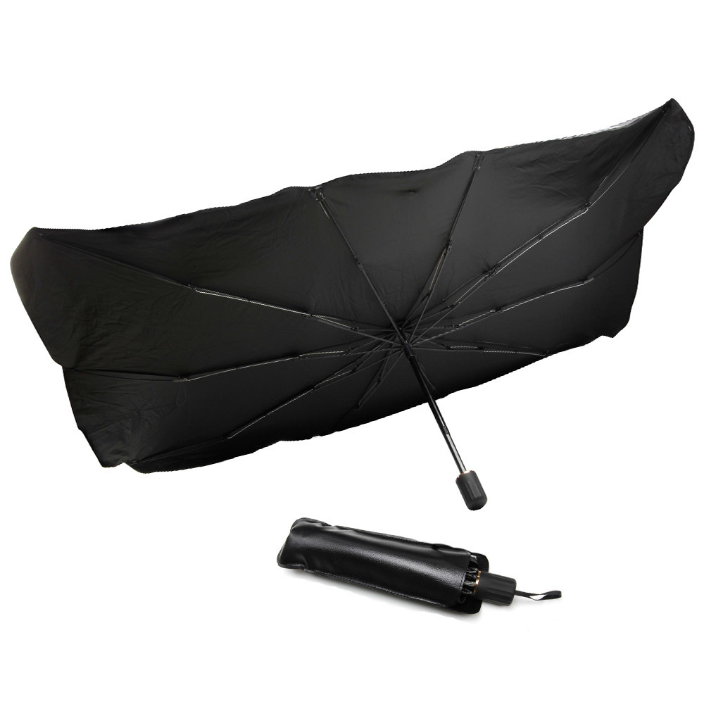 - 【改良 10本骨逆折り式】車用サンシェード 折り畳み式傘型 収納ポーチ付き (79x125x135cm)フロントガラス 遮熱 遮光 フロントシェード