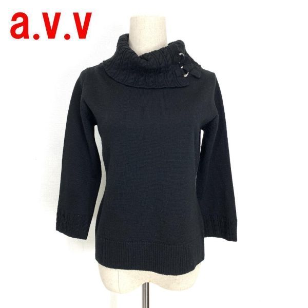 - A1407 アー・ヴェ・ヴェ ニット セーター ウール タートルネック 黒 a.v.v ブラック ボリューム襟 七分袖 38