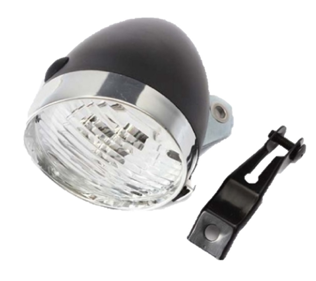 - 自転車 ヘッド ライト 砲弾型 3 LED レトロ クラシック デザイン 電池式 金具 付 ブラック 黒 色 ZCL083
